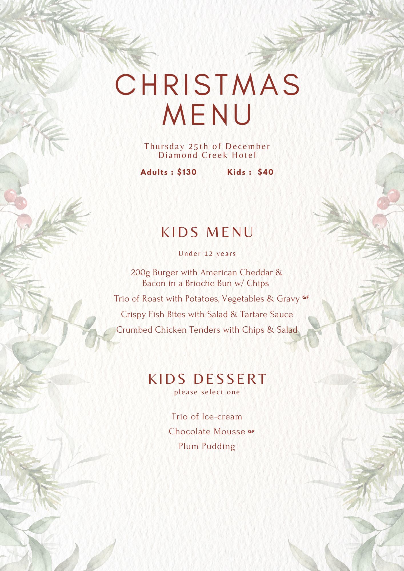 Christmas Kids Menu 2025